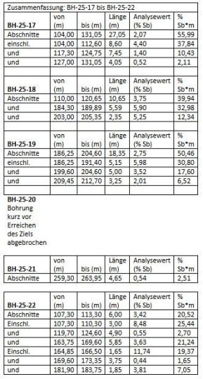 Antimony Resources Corp. (CSE: ATMY) (OTCQB: ATMYF) (FWB: K8J0) meldet weitere massive antimonhaltige Stibnitvorkommen („Sb“) mit 8,48 % Sb über 3,0 Meter und 2,07 % Sb über 27,05 Meter