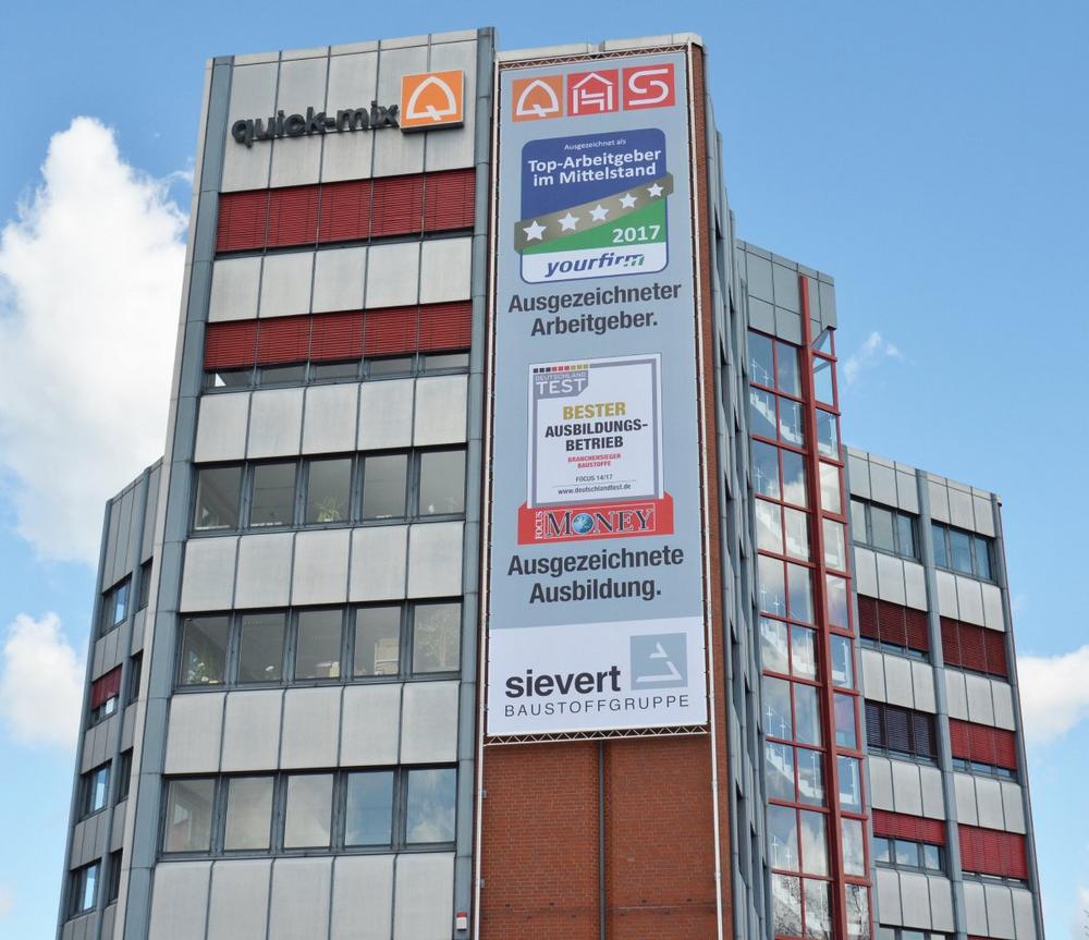 Aus gleich zwei Untersuchungen ging die Sievert Baustoffgruppe als herausragender Arbeitgeber hervor. Zum einen erhielt sie vom renommierten Magazin Focus Money das Siegel als bester Ausbildungsbetrieb ihrer Branche, zum anderen würdigte die deutschlandweit bekannte Jobbörse yourfirm.de Sievert als mittelständischen Top-Arbeitgeber. Die Gruppe, zu der die Unternehmen quick-mix (Trockenmörtel), Hahne Bauchemie und der Logistikdienstleister Sievert Handel Transporte gehören, freut sich über die doppelte Bestätigung ihrer intensiven Personalarbeit in den vergangenen Jahren.