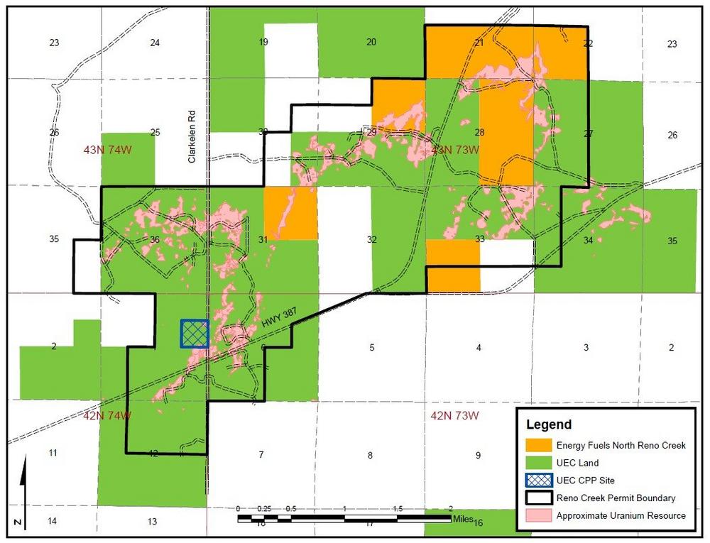 • North Reno Creek befindet sich innerhalb der bestehenden Genehmigungsgrenze von UEC bei Reno Creek, wodurch eine ganzheitliche Erschließung möglich ist.