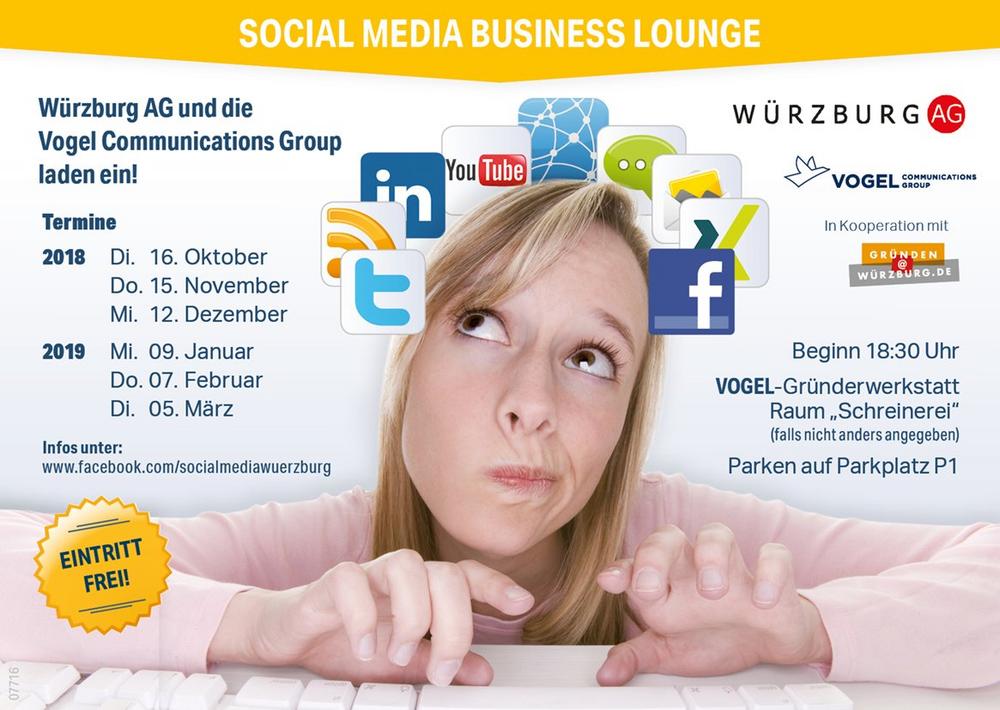 Zusammen mit der Würzburg AG veranstaltet die Vogel Communications Group am Dienstag, 16. Oktober  2018 um 18:30 Uhr, den neunten Saisonauftakt der Social Media Business Lounge. Diese richtet sich mit Kurzvorträgen und Networking an alle in der Region, die sich professionell mit dem Thema „Social Media“ beschäftigen. Die erste Ausgabe wartet gleich mit zwei besonderen Impulsvorträgen auf: „User-Mind und die Psychologie der Konversion“ sowie Social-Media-Kampagnen des Skateshops „Blowout“ und die Wirkung von Skater-Videos.