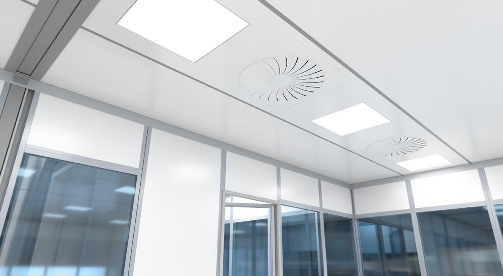 Damit Reinräume ihre Aufgabe verlässlich erfüllen, müssen sie hermetisch abgeriegelt sein. Nur so kann gegenüber der Außenluft ein ständiger Überdruck aufrechterhalten werden, der das Eindringen von Partikeln verhindert. Ein abgeschlossenes Raumsystem gehört also ebenso zur Ausstattung wie eine leistungsstarke Lüftungs- und Klimatechnik mit reinraumtauglichen Zu- und Abluftfiltern. Ebenfalls ein klares Muss ist die passende Mess-, Steuerungs- und Regeltechnik, ohne die die kontinuierliche Einhaltung der Werte nicht zu gewährleisten wäre.