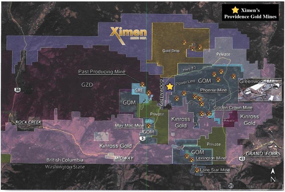 Ximen Mining Corp. besitzt sämtliche Rechte an seinen drei Edelmetallprojekten, die sich im Süden der Provinz British Columbia befinden. Die beiden Goldprojekte von Ximen sind die Goldmine Amelia und das epithermale Goldprojekt Brett. Darüber hinaus besitzt Ximen noch das Silberprojekt Treasure Mountain, das an den ehemaligen Produktionsbetrieb der Silbermine Huldra grenzt. Derzeit ist das Silberprojekt Treasure Mountain Gegenstand von Optionsvereinbarungen. Der Optionspartner tätigt jährlich gestaffelte Zahlungen in Form von Barmittel und Aktien und finanzieren auch die Erschließung dieses Projekts. Das Unternehmen hat kürzlich auch die Kontrolle über die Goldmine Kenville in der Nähe von Nelson British Columbia übernommen, die alle ober- und unterirdischen Rechte, Gebäude und Gerätschaften sowie eine Genehmigung für den Bau einer unterirdischen Fallstrecke umfasst.