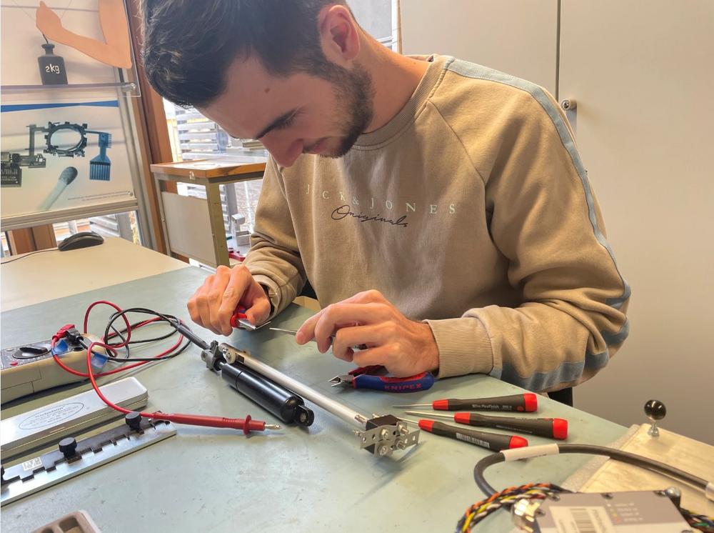 Bereits während seiner Schulzeit im Schwarzwald hat Schmitt das Interesse für dieses Thema verfolgt, beispielsweise bei „Jugend forscht“. Schmitt: „Diese fast schon magische Erscheinung, also ein Metalldraht, der sich quasi durch Geisterhand bewegt, hat mich fasziniert. Dem wollte ich auf den Grund gehen.“ Über einen Zeitungsartikel ist er nach seinem Abitur auf die Hochschule Aalen aufmerksam geworden. Mit dem Start seines Studiums durfte er seine Projekte bei Prof. Dr. Arif Kazi im Labor vorantreiben. Beispielsweise hat er einen elektrischen Auslösemechanismus für Gasdruckfedern gebaut, die unter anderem in der Höhenverstellung von einem Bürostuhl eingesetzt werden. „Ich bin aus dem Schwarzwald nach Aalen gekommen, weil es hier an der Hochschule eines der wenigen Forschungslabore für Formgedächtnistechnik gibt. Da mich das Thema so interessiert und ich schon einige Projekte umgesetzt hatte, wollte ich das nicht aufgeben“, sagt Schmitt. Seine Entscheidung wurde durch den guten Ruf des Studiengangs Mechatronik bestärkt.