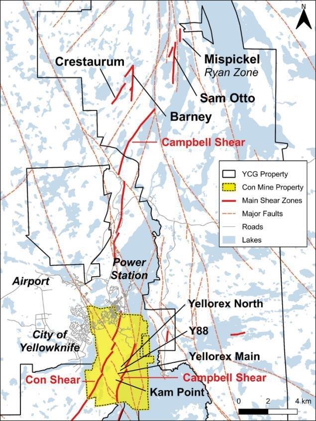 Das Yellowknife-Goldcamp wurde entlang der Campbell-Scherung erschlossen, einer bedeutenden Struktur des Gürtels, in der sich die Goldminen Giant und Con befinden, die zusammen 14 Millionen Unzen Gold produzierten. Die Strategie des Unternehmens besteht darin, die Bohrungen auf dem Campbell Shear in der Tiefe und südlich der Mine Con fortzusetzen, um die Mineralressourcen weiter zu erhöhen. Das Explorationspotenzial entlang des Campbell-Shears südlich der Mine Con ist in Abbildung 3 dargestellt.