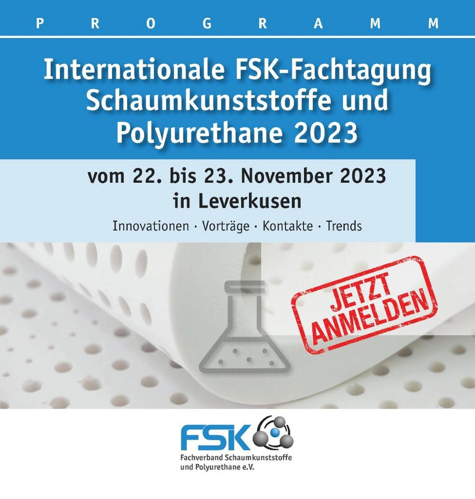 Jetzt anmelden zur Internationalen FSK-Fachtagung Schaumkunststoffe und Polyurethane am 22. und 23. November 2023 in Leverkusen sowie das aktuelle Programm zur Internationalen FSK-Fachtagung abrufen.