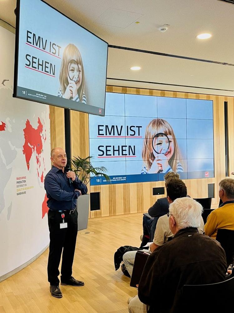 Alle Teilnehmenden verfolgten mit großem Interesse die Fachvorträge, zum Beispiel das vielbeachtete Referat von Prof. Dr.-Ing. Peter Reiser von der Hochschule Heilbronn: EMV – Etwas Mehr Verstanden. Äußerst positiv bewertet wurden auch die Laborrundgänge, in denen sich Interessierte über die Praxis von EMV-Pre-Compliance-Tests informieren konnten.