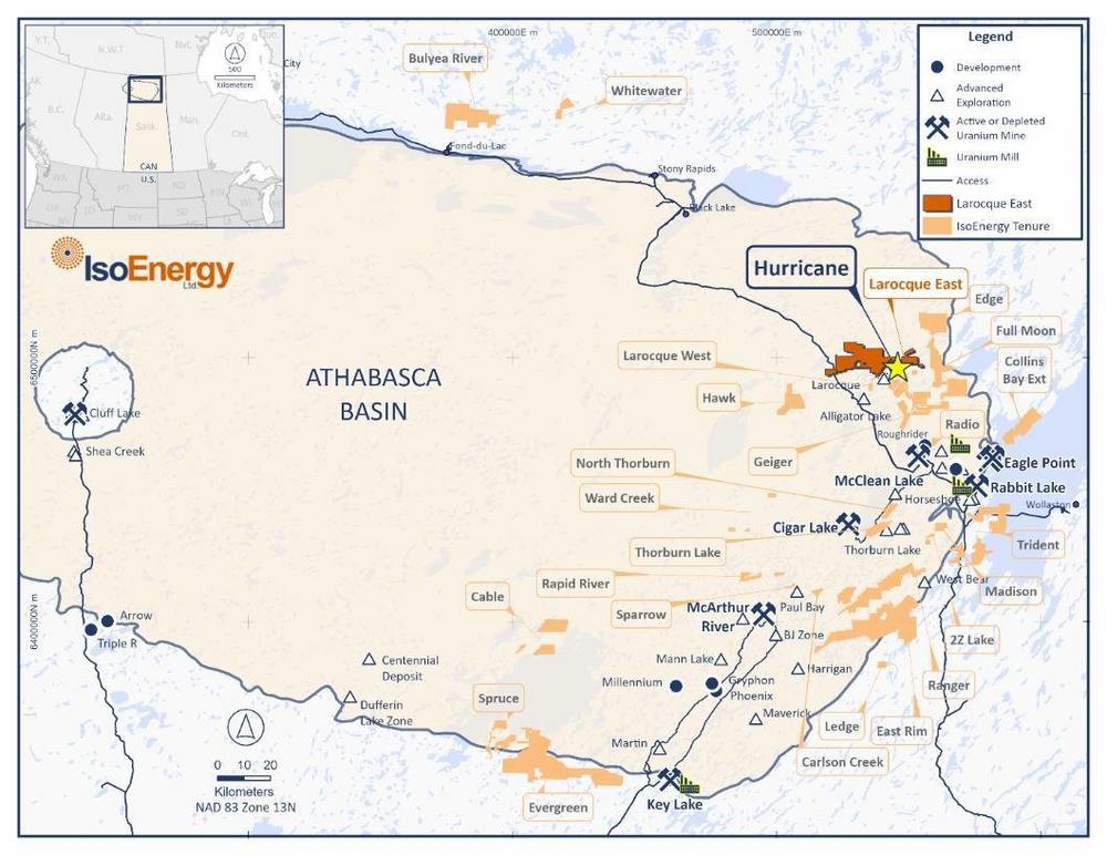 IsoEnergy Ltd. (TSX: ISO) (OTCQX: ISENF) ist ein führendes, weltweit diversifiziertes Uranunternehmen mit beträchtlichen aktuellen und historischen Mineralressourcen in den wichtigsten Uranabbaugebieten Kanadas, der USA, Australiens und Argentiniens, die sich in unterschiedlichen Entwicklungsstadien befinden und eine kurz-, mittel- und langfristige Hebelwirkung auf steigende Uranpreise haben. IsoEnergy treibt derzeit sein Projekt Larocque East im kanadischen Athabasca-Becken voran, das die Lagerstätte Hurricane beherbergt, die sich der weltweit höchstgradigen angezeigten Uran-Mineralressource rühmen kann.