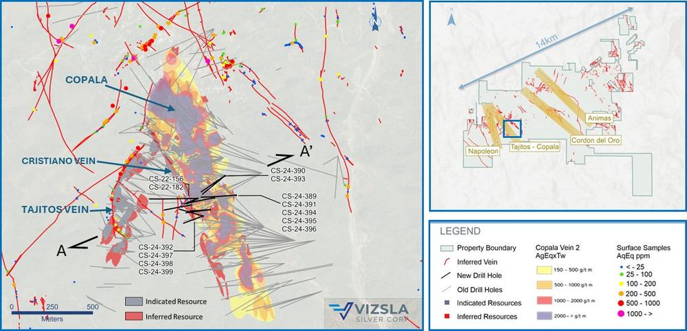 - CS-24-389 ergab 224 g/t AgEq über 2,30 mTW (2.851 g/t Silber und 37,30 g/t Gold).