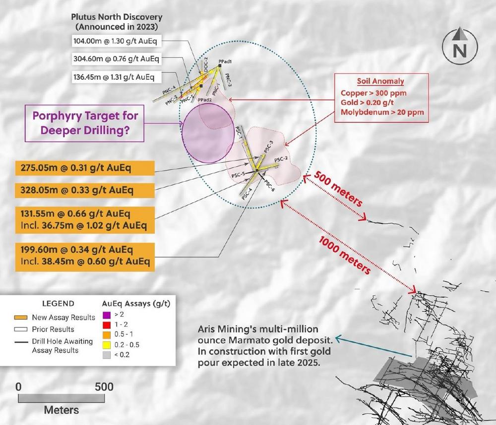 Collective Mining entdeckt ein Porphyrsystem bei Plutus per Bohrkern von 328,05 Metern mit 0,31 g/t Goldäquivalent ab der Oberfläche