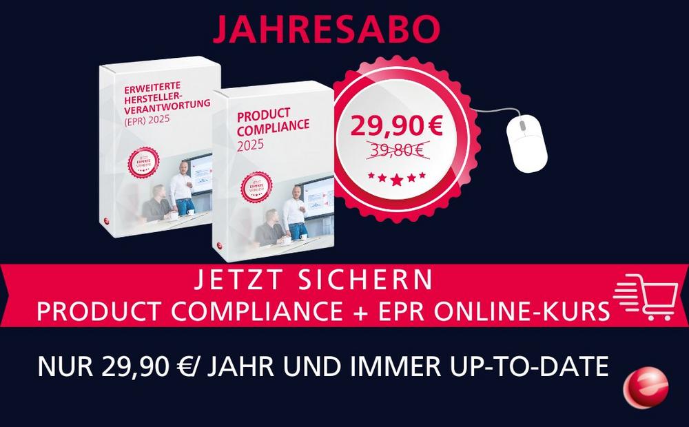Sichern Sie sich jetzt den ultimativen Zugang zu wertvollem Fachwissen – für nur 29,90 € im Jahr: Product Compliance Online-Kurs: Grundlagen & Praxis.
