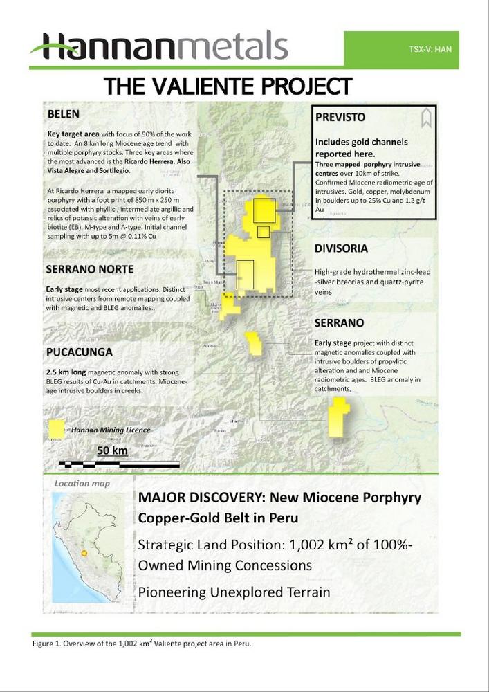 “The alkalic-type epithermal gold style of mineralization is encouraging, as these systems globally can develop into large, high-grade deposits. We are in the very early stages here – these results comes from initial channel sampling, and we have multiple untested targets across the 4 km x 4 km soil gold anomaly. “Hannan’s strategy is to systematically explore the new Valiente mineral belt gaining drill permits progressively as we make further discoveries. With Peru’s improving and transparent drill permitting system, we look forward to drilling at Belen in Q2 2025, located 20 km to the SW of Previsto, while we derisk this new gold finding to achieve staged drill programs across the entire 150 km long Valiente gold-copper project.”