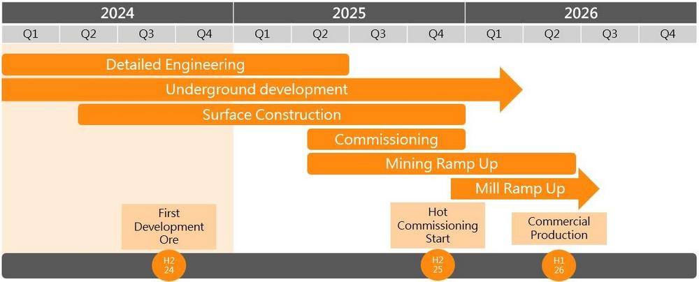 • Die Bauarbeiten an der Oberfläche sind zu etwa 24 % abgeschlossen, und der Gesamtzeitplan für die kommerzielle Produktion im ersten Halbjahr 2026 liegt weiterhin im Plan.