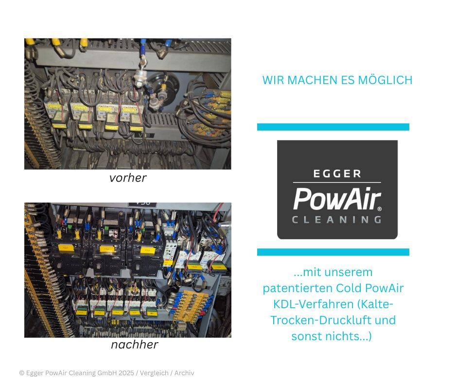 Trockeneisreinigung war gestern. Das Cold PowAir KDL-Verfahren ermöglicht eine berührungslose Reinigung mit kalter, trockener Druckluft – ganz ohne Wasser, Chemie oder Rückstände. Ideal geeignet für sensible Bereiche wie Batterieproduktionsstätten, Hochspannungskomponenten, Wasserkraftgeneratoren sowie Anlagen in der Lebensmittel-, Pharma- und Reinraumtechnik.