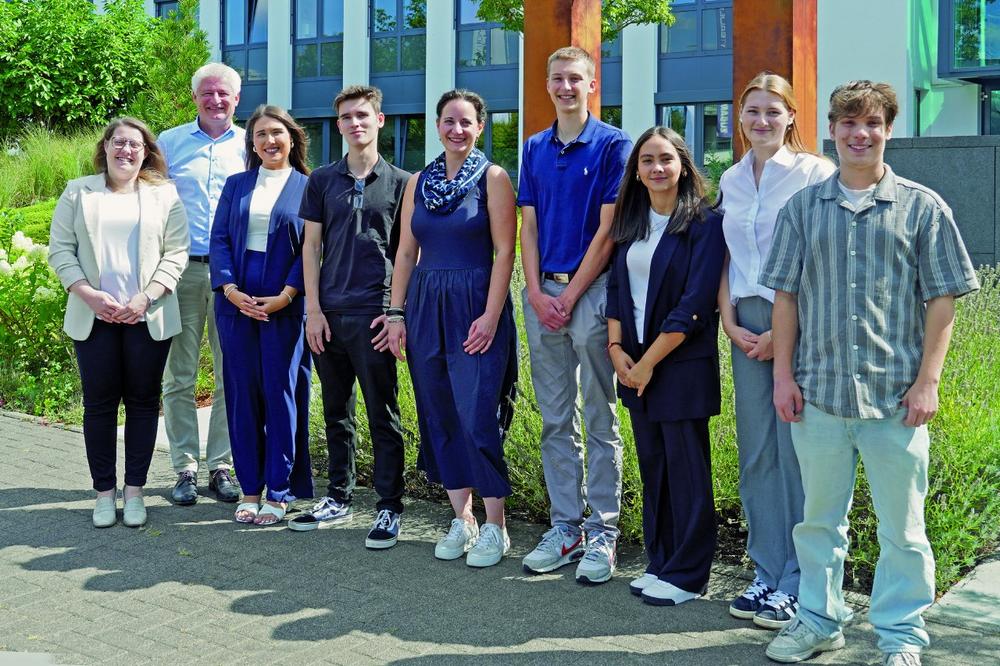 Die ersten drei Wochen in Bad Nauheim liegen hinter ihnen und es ist erstaunlich viel, was die sechs Berufseinsteigerinnen und -einsteiger bei der Kooperation EUROBAUSTOFF bereits in dieser Zeit gelernt, getestet und verinnerlicht haben. Flyer für die große Hausmesse der Fachhandelskooperation für Baustoffe, Holz und Fliesen vorbereitet, Werbekostenzuschüsse überprüft oder direkt am Empfang der EUROBAUSTOFF „eigentlich schon von allem was mitgekriegt“. Niklas, Fynn und Maria wollen Kaufleute im Groß- und Außenhandelsmanagement werden, Charlotte hat sich für Büromanagement entschieden und Lev startete als Fachinformatiker für Anwendungsentwicklung. Hoffentlich nicht nur ein Jahr bleibt Praktikant Paul, der sich in den nächsten zwölf Monaten im Bereich Digitalisierung / Produktdatenmanagement umschauen wird. Während Vanessa Schuchmann, Referentin Ausbildung, und Fachbereichsleiterin Kathrin Geuer ihnen allen während der Einführungswoche ab 1. August besonders intensiv zur Seite standen und im Schulterschluss mit den Auszubildenden im zweiten und dritten Lehrjahr erste Einblicke in die sehr komplexen Unternehmensstrukturen boten, war es nun an Personalleiter Jens Döllerer, die fünf jüngsten Mitarbeitenden im Haus herzlich willkommen zu heißen. Nach einer kleinen Vorstellungsrunde, in der die Azubis auch ihre Hobbies beschrieben, zog Döllerer Parallelen zwischen der Sportwelt und dem Berufsleben. So träfen die jungen Kolleginnen und Kollegen in der EUROAUSTOFF Zentrale nicht nur auf ganz unterschiedliche Teams, sondern seien selbst auch als Teamplayer gefragt. Es gäbe sicherlich Anreize für einen Aufstieg, aber auch Pflichten. Nicht nur ihre Chef-Coaches Vanessa Schuchmann und Kathrin Geuer, auch ihr Trainerstab in Form von Unterweisern und Paten sei bestens aufgestellt, so dass sie eine Ausbildung auf Niveau der Champions League erwarte, so Döllerer. „Gemeinsam werden wir Erfolge feiern, aber vielleicht auch manche Niederlage erleben, in denen wir als Team zusammenstehen. Sicher gibt es auch mal ein Foulspiel, dann wollen wir uns die Hand reichen“, blieb der oberste Coach im Bild und lenkte den Blick der neuen Player auf das Regelwerk der EUROBAUSTOFF, das das Miteinander auf dem Spielfeld präge. So lud er die Azubis ein, die vier Unternehmenswerte „persönlich, vertrauensvoll, verlässlich und zukunftsstark“, selbst nach eigenen Erfahrungen mit Leben zu füllen, was ihnen beeindruckend leichtfiel. „Auch menschlich ist es echt sehr schön hier“, betonte der angehende Kaufmann Niklas, während IT-ler Paul im Sinne des vertrauensvollen Umgangs auf Datensicherheit pochte und Kollege Fynn unter Verlässlichkeit sowohl Pünktlichkeit als auch Termintreue verbuchte.