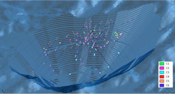 • Erz ist kieselsäurehaltig, spröde und bricht leicht bei der Zerkleinerung, jedoch deuten hohe BWi-Werte darauf hin, dass es nicht für autogenes oder halbautogenes Mahlen geeignet ist.