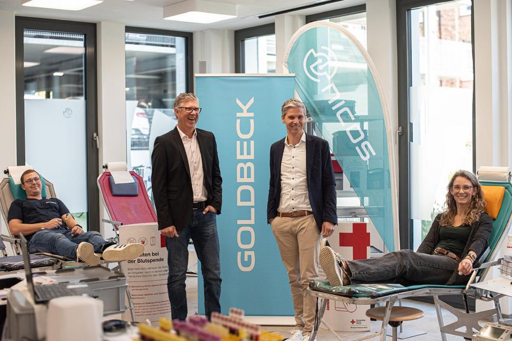 Am Mittwoch spendeten zahlreiche Freiwillige am gemeinsamen Unternehmenssitz in der Robert-Bosch-Straße dringend benötigtes Blut, darunter auch sieben Erstspender. „Eine Blutspende ist ein echtes Geschenk und durch nichts zu ersetzen. Viele Menschen können nur durch die Spenden anderer überleben. Deshalb freut es mich besonders, dass wir die Aktion schon zum dritten Mal gemeinsam mit der nicos organisieren und dass wir dabei auf die Teilnahmebereitschaft der Unternehmen im rob17-Areal zählen können“, sagt Christian Terwey, Leiter der Goldbeck-Niederlassung Münster. Inspiriert wurde diese Aktion durch die Logistikinitiative „Blut transportiert e.V.“, welche sich die Bekämpfung von Blutkrebs und Erkrankungen des blutbildenden Systems als Ziel gesetzt hat. „Gemeinsam können wir noch mehr Menschen erreichen und Barrieren für eine Spende senken“, betont Terwey.