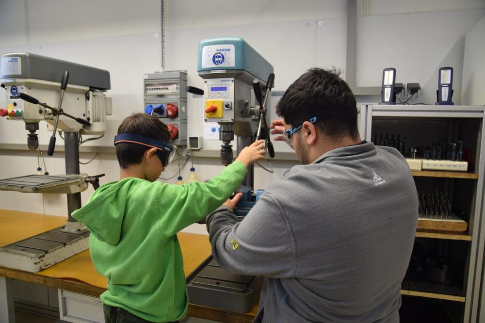 Gemeinsam mit den WITTENSTEIN-Auszubildenden bauten die Kinder ein Steckspiel, das technische Grundlagen spielerisch vermittelte und gleichzeitig handwerkliches Geschick erforderte. Dabei lernten sie verschiedene Arbeitsschritte und Stationen wie 3D-Drucken, Bohren, Leimen und Wärmeschrumpfen kennen. Das Werkstück durften sie als Erinnerung mit nach Hause nehmen.