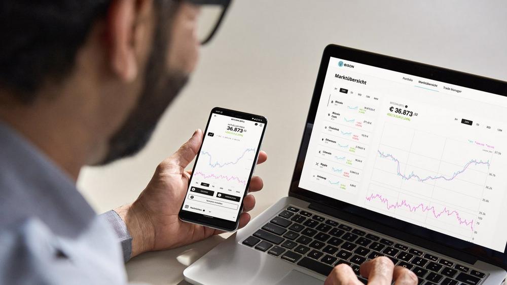 BISON zeigt immer den aktuellen Kauf- und Verkaufspreis an, zu dem man Kryptowährungen handeln kann. Der Handel von Kryptowährungen ist gebührenfrei. Es fällt lediglich der anteilige Spread an, also der Unterschied zwischen Kaufpreis und Verkaufspreis. Die intuitive Oberfläche für Nutzer:innen sowie die App am Smartphone erleichtern den Zugang, bei Fragen und Problemen unterstützt ein verlässlicher Kundendienst. Neuanleger:innen, die überlegen, ihr Portfolio mit Kryptowährungen zu diversifizieren, können mit einer regulierten Plattform wie BISON einfach und sicher in den Handel einsteigen.