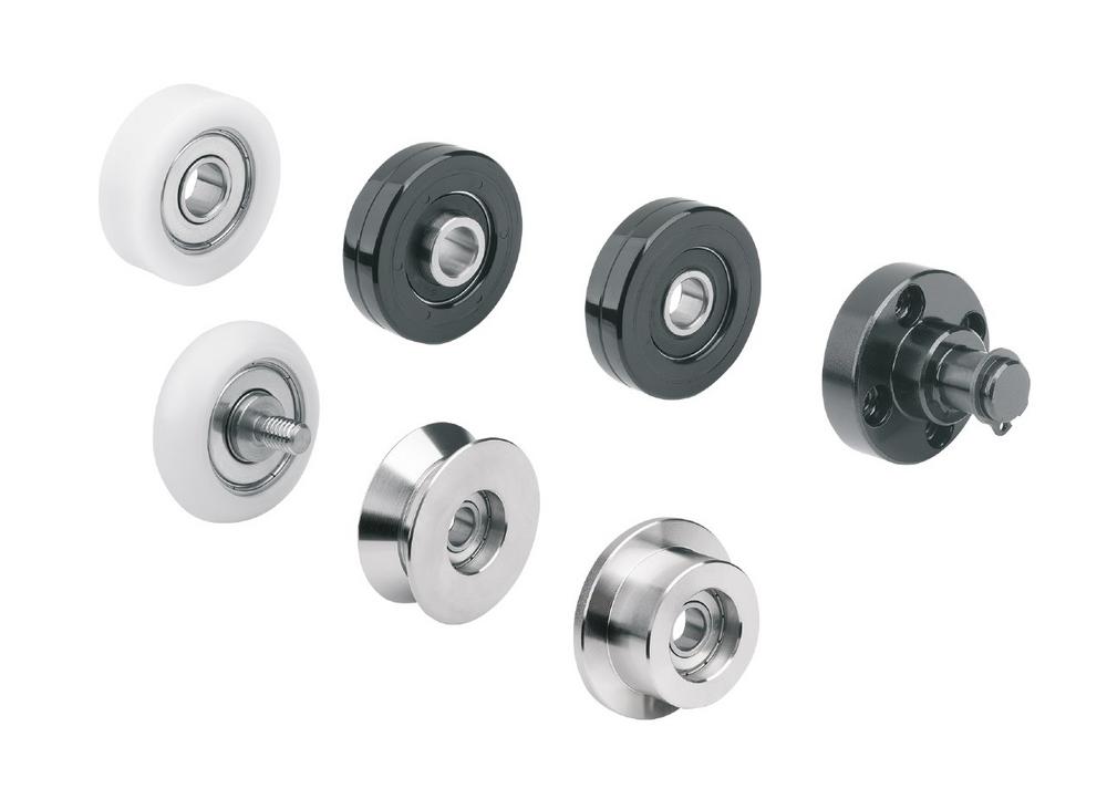 Das Programm deckt ein breites Einsatzspektrum ab. Zur Auswahl stehen zylindrische, konkave, konvexe und Y-förmige Laufkonturen sowie Ausführungen mit einseitigem oder beidseitigem Flansch. Diese vielfältigen Varianten ermöglichen die Anpassung an unterschiedliche Führungssysteme und Konstruktionsvorgaben. Passende Befestigungsbolzen aus brüniertem Stahl oder Edelstahl ergänzen das System.