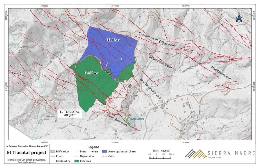 Sierra Madre Gold and Silver Ltd. (TSXV: SM) (OTCQX: SMDRF) („Sierra Madre” oder das „Unternehmen”) (- https://www.commodity-tv.com/play/sierra-madre-gold-and-silver-interview-at-la-guitarra-insight-into-the-acquisition-of-del-toro/ -) freut sich bekannt zu geben, dass die Genehmigung für eine Änderung der Landnutzung für das Grundstück Tlacotal im östlichen Bezirk des Silber-Gold-Komplexes La Guitarra im mexikanischen Bundesstaat Estado de Mexico erteilt wurde. Darüber hinaus wurden  Grundstückskaufverträge für das Konzessionsgebiet Tlacotal sowie eine angrenzende Fläche von 33,1 Hektar unterzeichnet.
