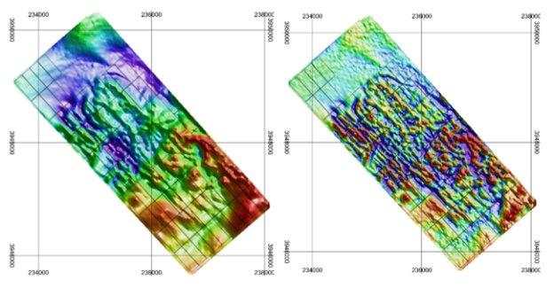 Das Unternehmen führte eine hochauflösende Magnetfeldmessung mittels Drohne durch, die auf die Unterstützung der Bohrplanung in überdeckten Bereichen und die strukturelle Vorerkundung des gesamten Konzessionsgebiets ausgelegt war. Die Messung umfasste ca. 305 Profilkilometer, die mit einem Linienabstand von 30 Metern in einer Höhe von ca. 25 Metern über dem Boden (AGL) überflogen wurden. Die Daten wurden mit einem hochempfindlichen Kalium-Magnetometer erfasst und mithilfe eines bodengestützten Magnetometers auf tageszeitliche Schwankungen korrigiert. Die Verarbeitungsergebnisse umfassen standardmäßige magnetische Produkte wie die magnetische Totalintensität (TMI), die auf den Pol reduzierte Intensität (RTP) und Ableitungskarten einschließlich der ersten vertikalen Ableitung (1VD), des analytischen Signals und der Neigungsableitung. Der Datensatz wurde zur Weiterverarbeitung bereitgestellt, einschließlich einer dreidimensionalen magnetischen Inversion.