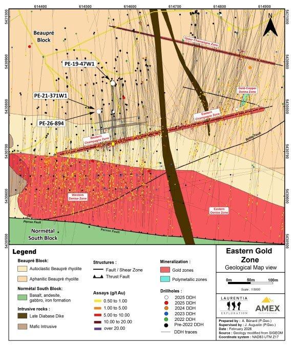 Jérôme Augustin P.Geo. Ph.D., (OGQ 2134), eine unabhängige qualifizierte Person gemäß der Definition in den Standards von Canadian NI 43-101, hat die in dieser Pressemitteilung enthaltenen geologischen Informationen geprüft und genehmigt. Das Bohrprogramm und das Qualitätskontrollprogramm wurden von Jérôme Augustin geplant und geleitet. Die Kernprotokollierungen und -probenahmen wurden von Laurentia Exploration durchgeführt.