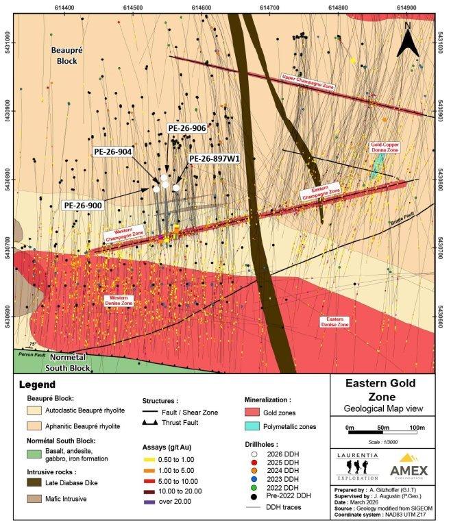 Jérôme Augustin P.Geo. Ph.D., (OGQ 2134), eine unabhängige qualifizierte Person gemäß der Definition in den Standards von Canadian NI 43-101, hat die in dieser Pressemitteilung enthaltenen geologischen Informationen geprüft und genehmigt. Das Bohrprogramm und das Qualitätskontrollprogramm wurden von Jérôme Augustin geplant und geleitet. Die Kernprotokollierungen und -probenahmen wurden von Laurentia Exploration durchgeführt.