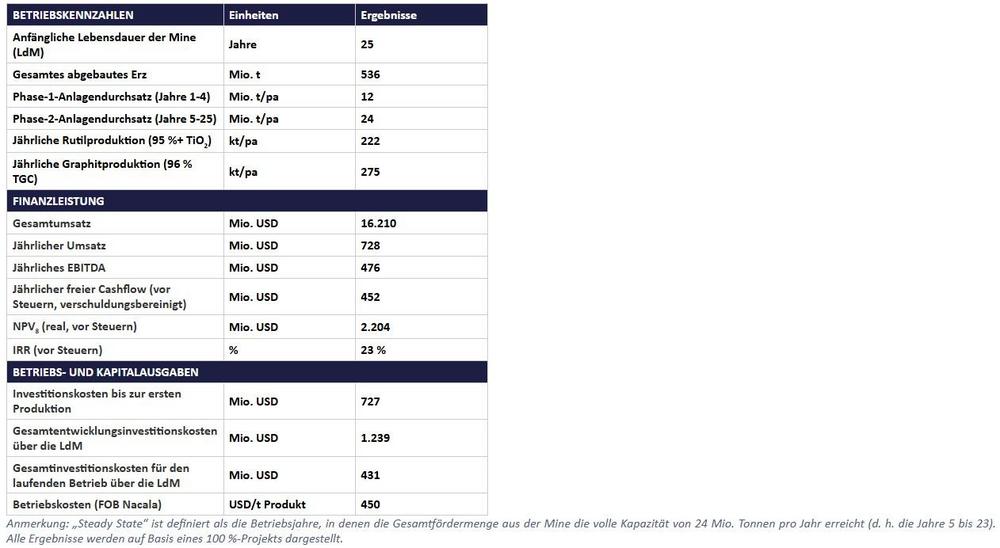 –          Betriebskosten von nur 450 USD pro Tonne Produkt (FOB Nacala) – Grundlage für eine starke Margenresilienz über Rohstoffzyklen hinweg
