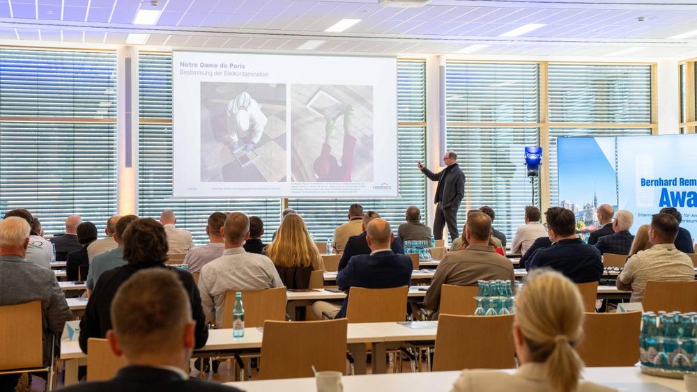 Neben der Preisverleihung bot die Fachkonferenz an zwei Tagen ein breit gefächertes Vortragsprogramm mit konkretem Mehrwert für Planung und Ausführung. Ein besonderes Highlight war der Einblick von Jens Engel (Leiter Produktmanagement Bautenschutz bei Remmers) in die Innenreinigung der Kathedrale Notre-Dame in Paris nach dem Jahrhundertbrand – realisiert mit der Peel-off-Paste Arte Mundit. Dr. Markus Boos (Geschäftsführer Bernhard Remmers Institut für Analytik) zeigte unter dem Titel „Klarheit senkt Kosten“, wie fundierte Analysen zu besseren und wirtschaftlicheren Ausschreibungen beitragen, während Jannes Robben (Remmers Technik Service Bautenschutz) den Online-Systemfinder für eine effizientere Projektplanung vorstellte. Moderator Michael Schuster (Chefredakteur DBZ) gab darüber hinaus einen Überblick zu aktuellen Entwicklungen in der Architektur – von Künstlicher Intelligenz über zirkuläres Bauen bis hin zu Modul- und Holzbau sowie zur wachsenden Bedeutung der Umbaukultur. Weitere Impulse lieferten Prof. Jan R. Krause (Hochschule Bochum) mit seinem Vortrag „Form follows prompt – KI in der Architektur“ sowie der bekannte Wirtschaftsjournalist Thomas Ranft (ARD) mit einem Blick auf das Wohnen in der Klimazukunft und die Grenzen rein technologischer Lösungsansätze.