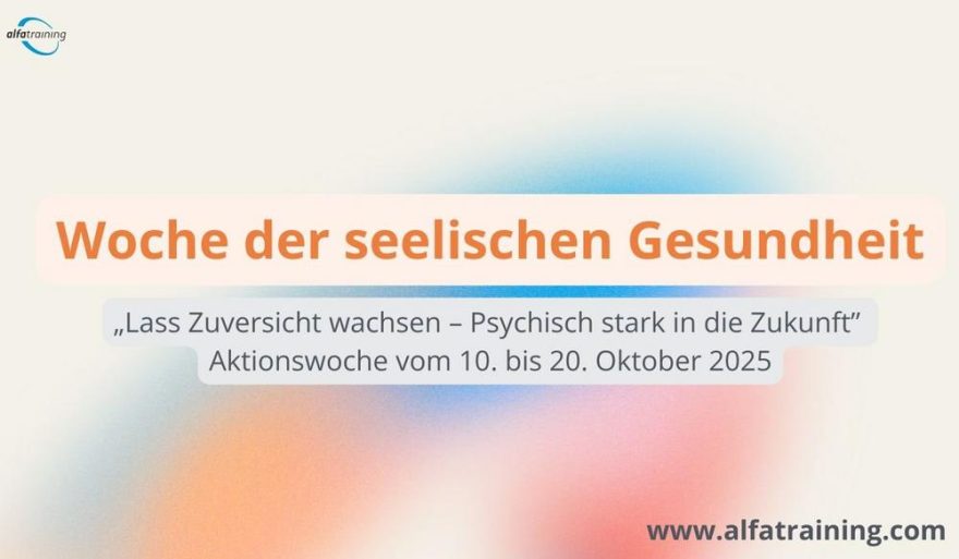 alfatraining.com nimmt an der bundesweiten Aktionswoche „Woche der Seelischen Gesundheit“ teil und bietet zwei kostenfreie Live-Onlineseminare an. Die Veranstaltungsreihe findet vom 10. bis 20. Oktober 2025 unter dem Motto „Lass…