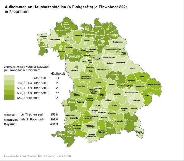 Menge an jährlichen Haushaltsabfällen pro Kopf liegt in Bayern 2021 um 14 Kilogramm über Bundesschnitt