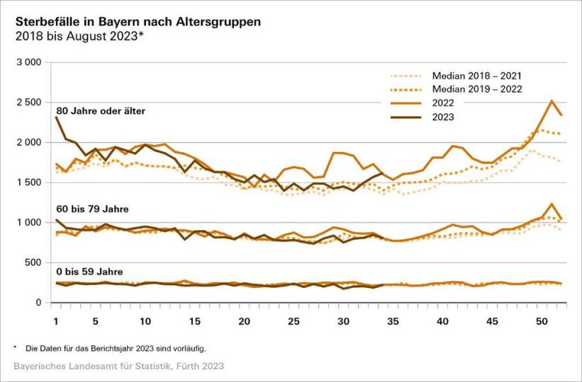 Sterbefallzahlen in Bayern liegen im August 2023 auf ähnlichem Niveau wie in den Vorjahren