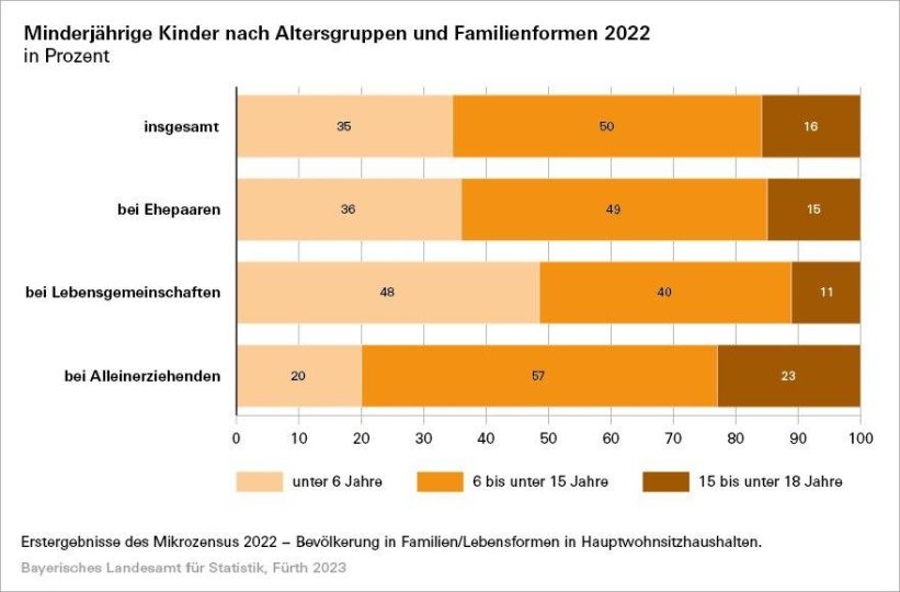 Wie der Mikrozensus zeigt, leben in Bayern rund 2,2 Millionen minderjährige Kinder, von denen 13 Prozent (278 000) bei einem alleinerziehenden Elternteil aufwachsen. Während in Lebensgemeinschaften eher jüngere Kinder leben,…