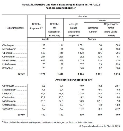 Bayerische Speisefischproduktion nimmt 2022 leicht zu