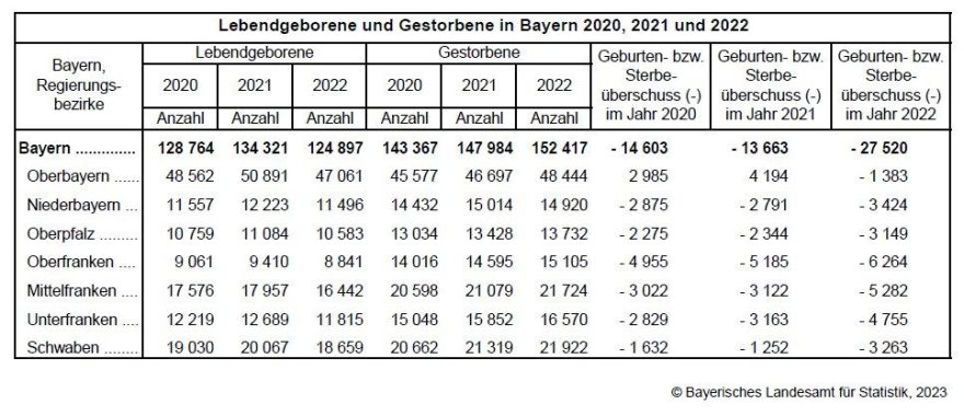 Weniger Geburten und mehr Sterbefälle im Jahr 2022 in Bayern zu verzeichnen