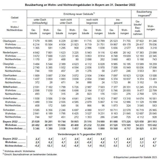 Bauüberhang in Bayern am 31. Dezember 2022 erneut über Vorjahresniveau