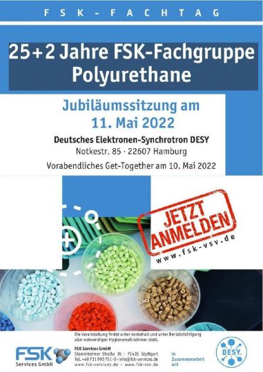 Der Fachverband Schaumkunststoffe und Polyurethane e.V. (FSK) lädt zum 25-jährigen Bestehen seiner größten Fachgruppe zur Jubiläumssitzung am 11. Mai 2022 im Forschungszentrum Deutsche Elektronen-Synchrotron DESY in Hamburg ein. Der Fachverband…