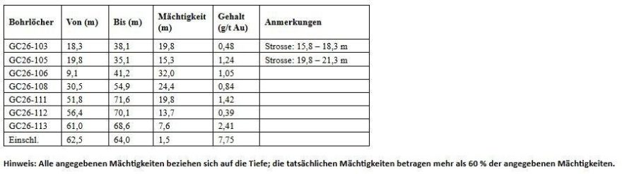 HIGHLIGHTS: – Expansion Zone o 101,0 m mit einem Gehalt von 5,34 g/t Gold ab 512,5 m o 8,75 m mit einem Gehalt von 9,11 g/t Gold ab 484,65 m o 27,2 m mit…