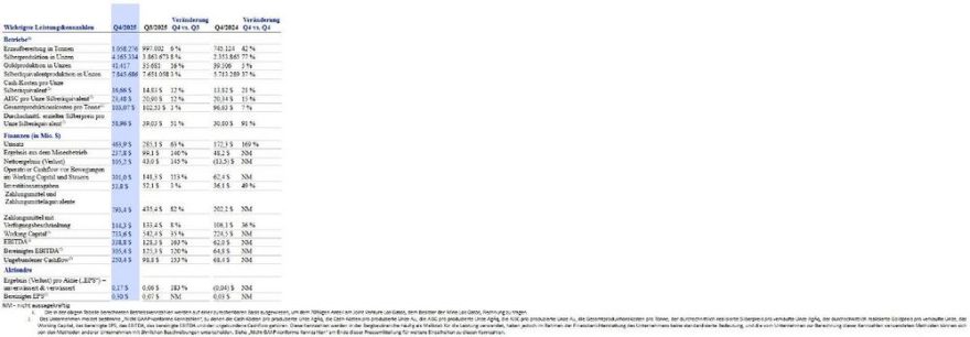 First Majestic Silver Corp. (NYSE:AG) (TSX:AG) (FWB:FMV) (das „Unternehmen“ oder „First Majestic“) freut sich, die testierten konsolidierten Finanzergebnisse des Unternehmens für das am 31. Dezember 2025 endende vierte Quartal bzw….
