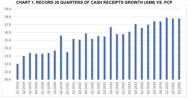 – Quartalsweise Zahlungseingänge von rund 7,81 Mio. $ – der zweithöchste Wert in der Unternehmensgeschichte. – Positiver operativer Cashflow von rund 1,2 Mio. $ in den letzten 12 Monaten. – Anhaltender Wachstumstrend mit 26 aufeinanderfolgenden…
