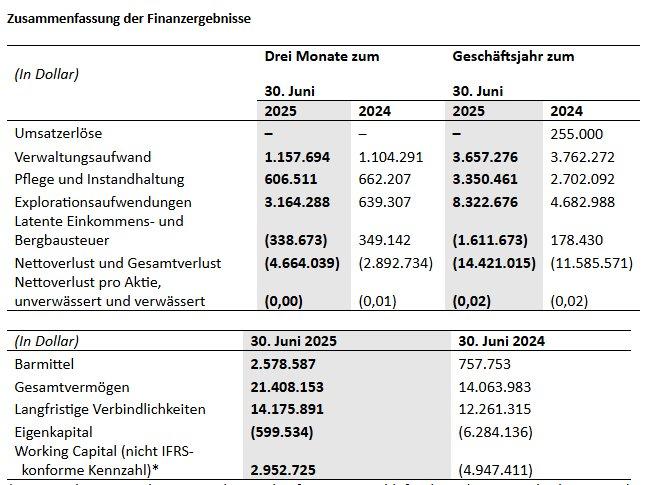 Abcourt Mines Inc. („Abcourt“ oder das „Unternehmen“) (TSX Venture: ABI) (OTCQB: ABMBF) hat seine Ergebnisse für das vierte Quartal und das Geschäftsjahr zum 30. Juni 2025 bekannt gegeben. Alle Geldwerte in…