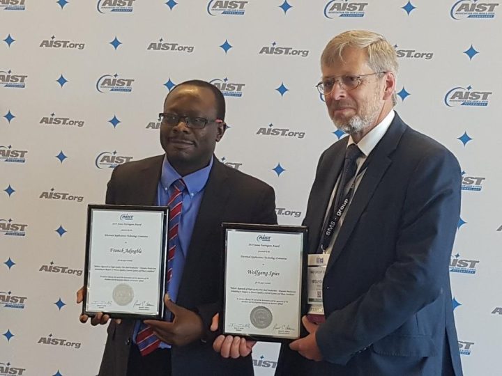 Am 7. Mai 2019 wurden Franck Adjogble und Wolfgang Spies, beide Ingenieure der SMS group, in Pittsburgh, Pennsylvania, USA, für ihren Vortrag „Ganzheitlicher Ansatz zur Herstellung von hochqualitativen Flachprodukten –…