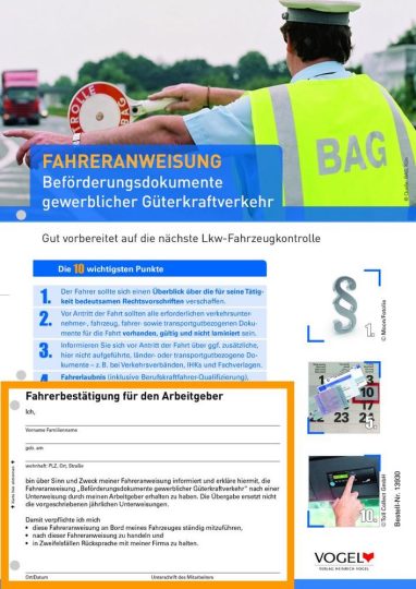 In unserer neuen 12-seitigen Fahreranweisung werden die Rechtsgrundlagen für den gewerblichen Güterkraftverkehr kompakt und übersichtlich für Fahrer dargestellt. Der Schwerpunkt liegt auf den mitzuführenden Papieren, die detailliert und mit Hilfen…
