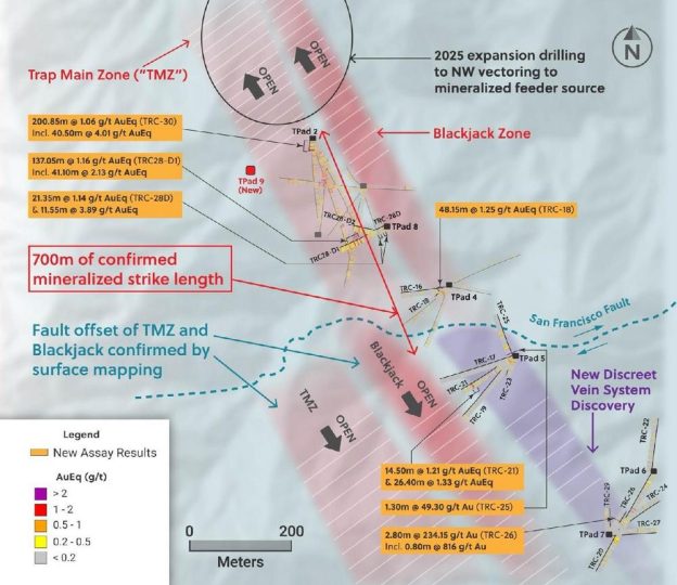 Collective Mining bohrt 40,5 Meter mit 4,01 g/t Goldäquivalent und entdeckt ein hochgradiges Adersystem mit Abschnitten einschließlich 0,8 Meter mit 816 g/t Gold bei Trap