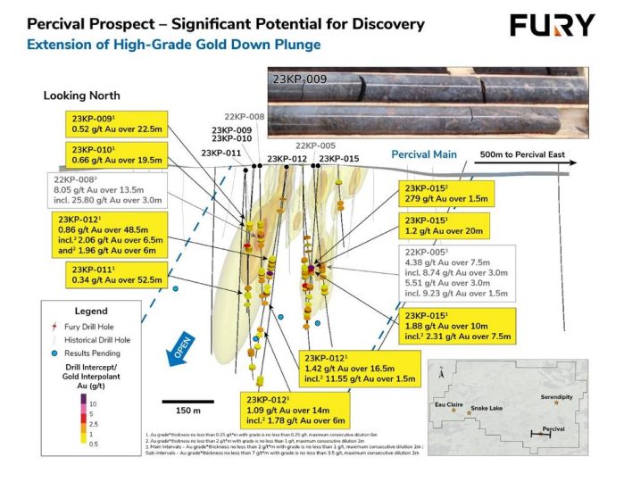 Fury durchschneidet bis zu 279 g/t Gold auf 1,5 m bei Percival Main