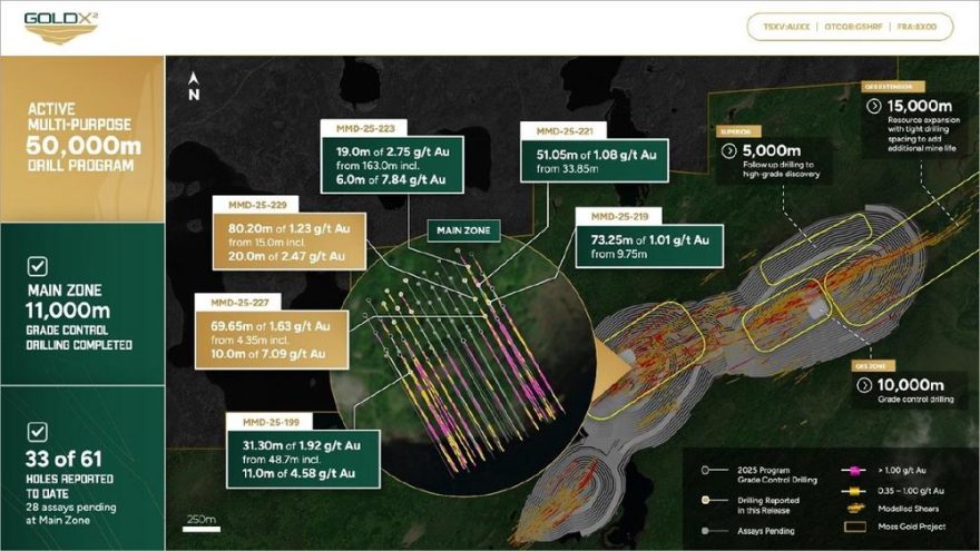 Grade-Control-Bohrungen in der Moss-Main-Zone definieren weiterhin hochgradige Scherzonen – 69,65 m mit 1,63 g/t Au ab 4,35 m, einschließlich 10,0 m mit 7,09 g/t Au