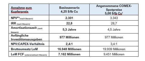 Einfacher Tagebau-/SXEW-Betrieb mit einer geschätzten durchschnittlichen Jahresproduktion von etwa 103.000 Tonnen (226 Millionen Pfund) Kupferkathoden in den ersten 10 Jahren des Bergbaus, wodurch Cactus zum drittgrößten Kathodenproduzenten in den USA…