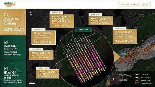 Gold X2 gibt positive Ergebnisse bei Kontrollbohrungen in der Hauptzone bekannt, darunter 49,0 m mit 2,13 g/t Au