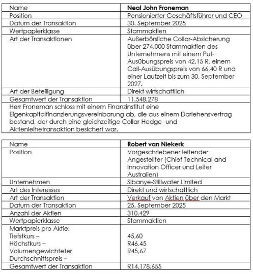 Abschluss des CEO-Wechsels bei Sibanye-Stillwater und Ernennung des EVP Business Development