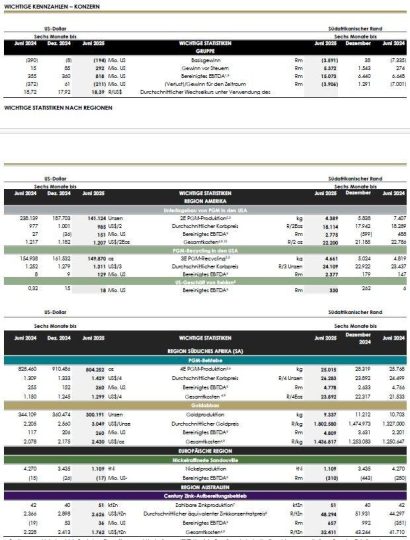 Sibanye-Stillwater legt Ergebnisse für das am 30. Juni 2025 endende Halbjahr in Kurzform vor